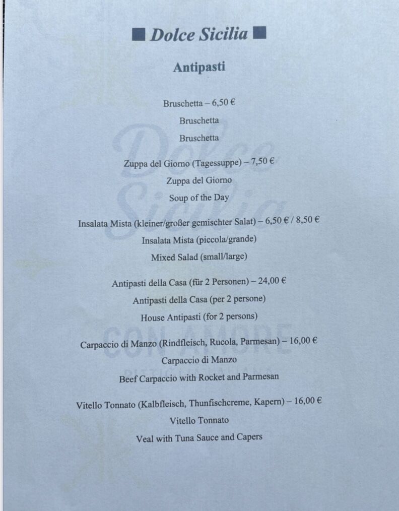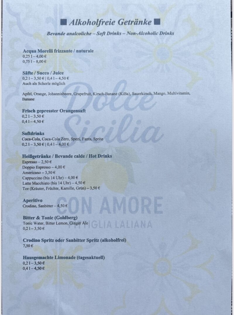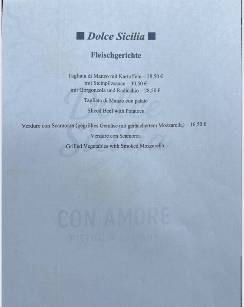 Willkommen im Dolce Sicilia in Leipzig. Wir freuen uns, Sie begrüßen zu dürfen. Ein freundlicher Empfang erwartet Sie in unserem Restaurant. Wenn Sie auf der Suche nach einer köstlichen Auswahl an internationaler, italienischer und mediterraner Küche sind, sind Sie bei uns genau richtig. Unser freundliches Personal serviert Ihnen fantastische Gerichte. Nehmen Sie Platz und genießen Sie unsere fachmännisch zubereiteten Speisen, die für jeden Geschmack etwas bieten. Wenn Sie eine Naschkatze sind, werden Sie unsere köstlichen Desserts lieben. Wir gehen auf unterschiedliche Ernährungsgewohnheiten ein und bieten eine Reihe laktosefreier und vegetarischer Optionen. Runden Sie Ihre Mahlzeit mit leckeren Getränken ab. Lehnen Sie sich zurück, entspannen Sie sich und genießen Sie Mittag- und Abendessen in unserem exquisiten Lokal. Wir haben einen schönen Biergarten und Musik, zusätzlich zu unserem großartigen Service.
